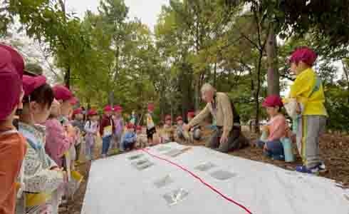 木の実や葉っぱを見つけたり、それを使って遊んだり♫