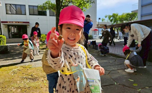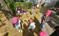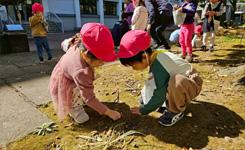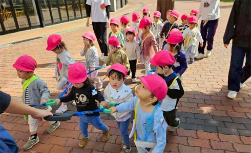 先日、もも組(満3歳児.2歳児)さんは、山梨学院キャンパスへお散歩に行ってきました。