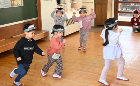 赤組さんは、『ねずみのよめいり』の音楽リズムを🐭