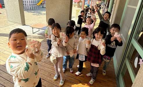「青組(5歳児)さんを送る会『びっくり!うれしい会』」おたのしみ1.2の次は❓おたのしみ❗️